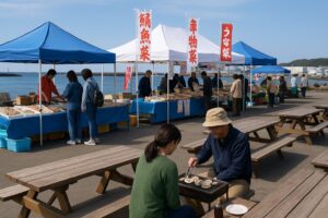 - 会場周辺には新鮮な海の幸が味わえる飲食店も多数